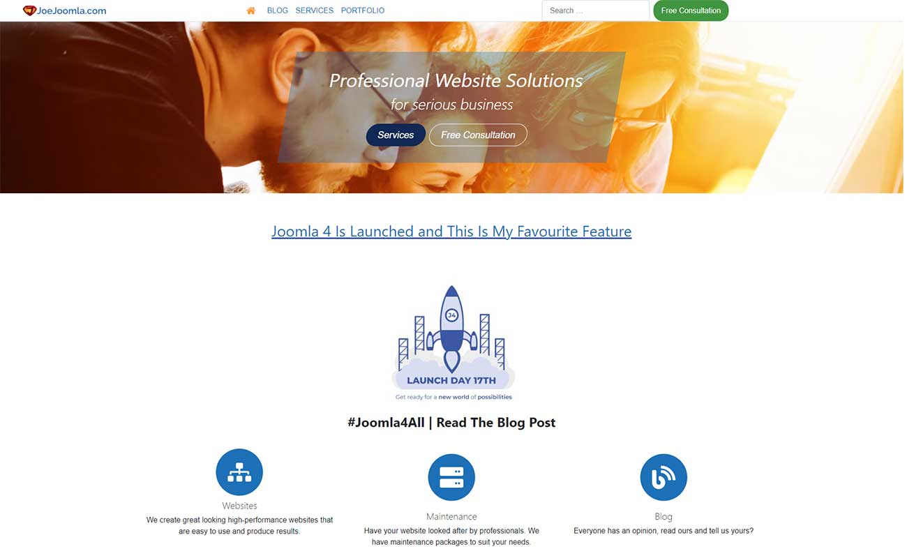 The JoeJoomla Joomla 5 website was built using no 3rd-party extensions using many of the principles found on this 'My Template' website.